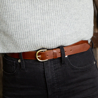 A brass finished buckle secures a classic belt, crafted from rich leather. Wear with your favorite pants or mix it up with a dress to complete your...